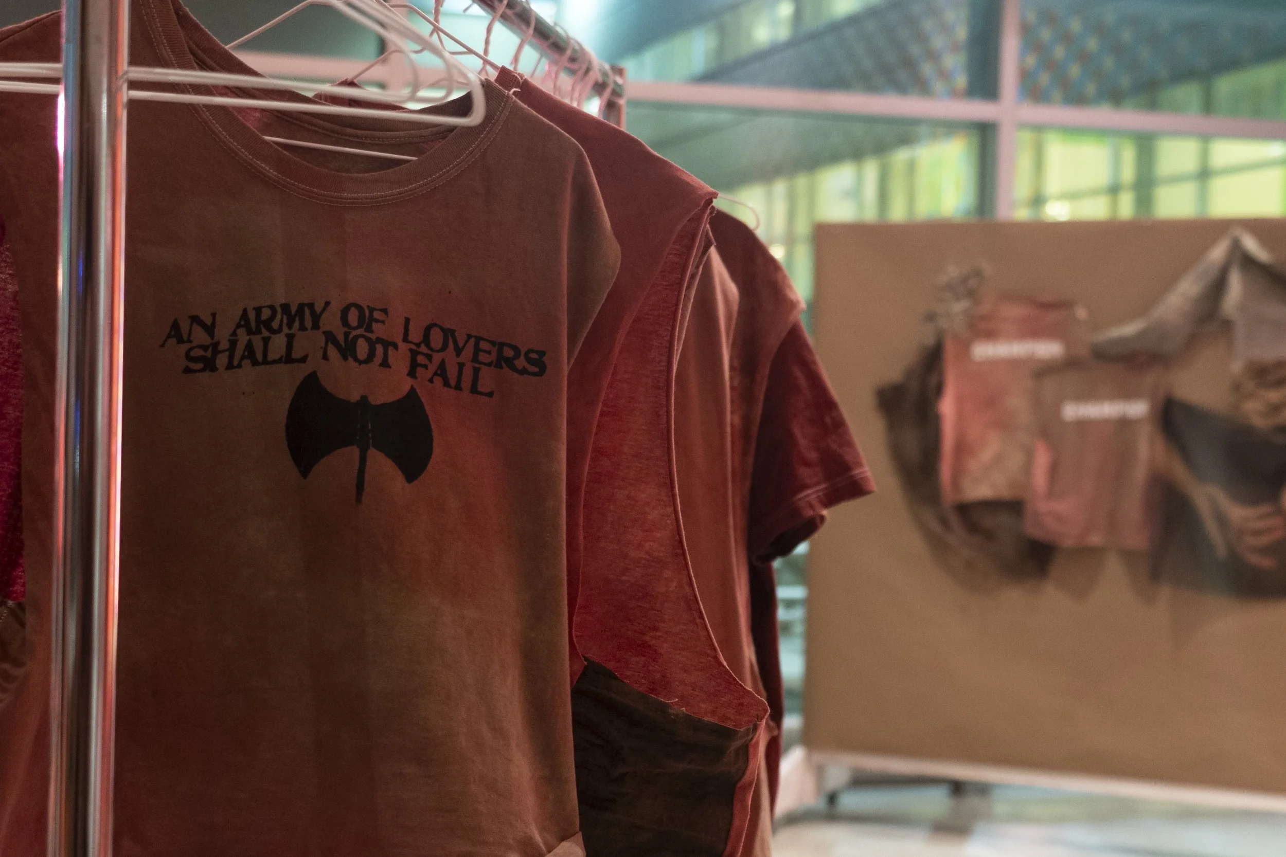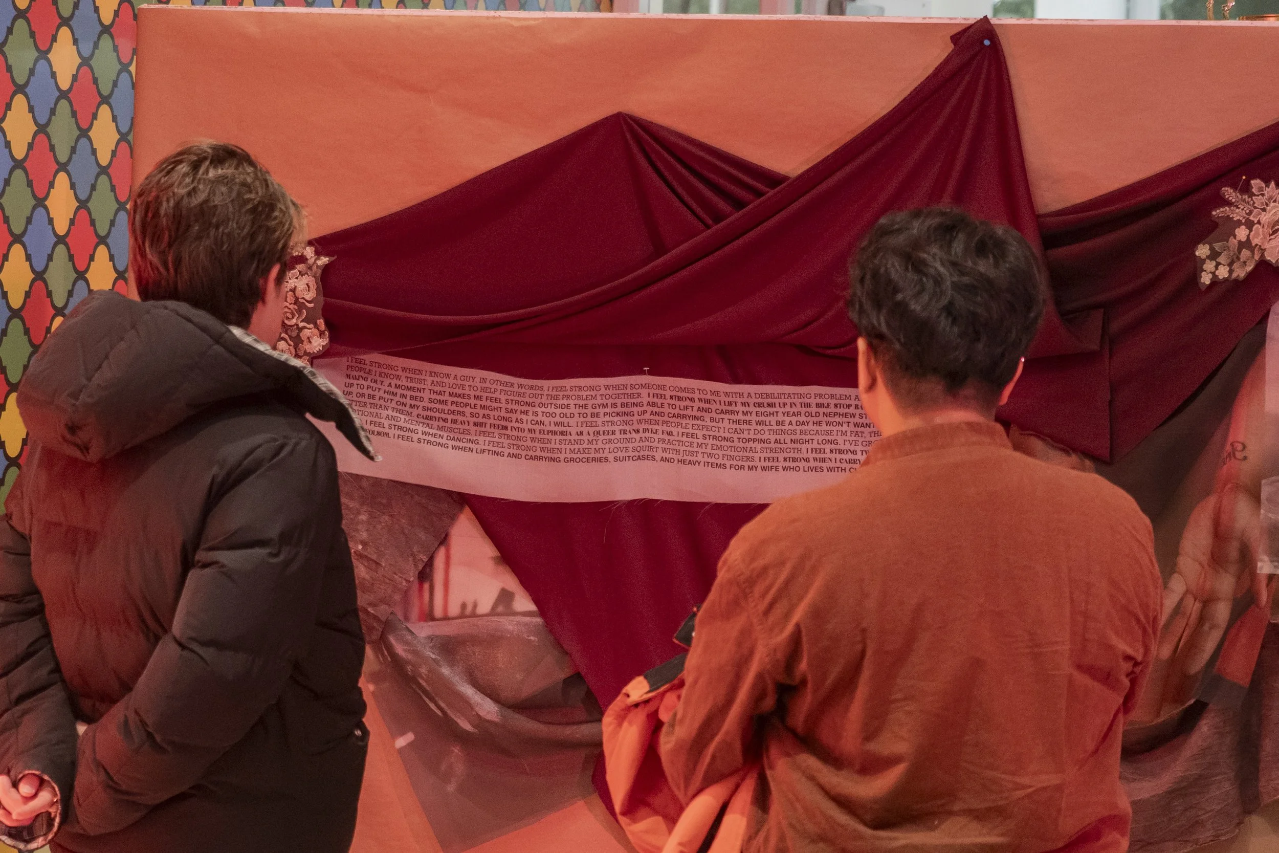 The title of the exhibition is inspired the last line of Sappho’s Reply by Rita Mae Brown, from her book of poetry The Hand That Cradles the Rock (1971). An army of lovers reminds us of the power of collective strength. Excerpts from QUEERS READ THIS, published anonymously by queers, a distributed leafier at New York City Pride, June 1990, are woven throughout the exhibition, showcasing how queer rage has had the same demands for decades. Grip Strength: An Army of Lovers Shall Not Fail celebrates queer folks turning to strength as a way to form community and hang onto power.
